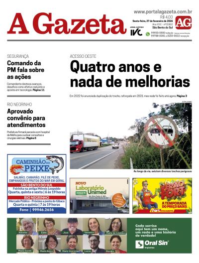 Caso queira se tornar um assinante on-line, entre em contato pelo telefone (47) 3203-0022 ou pelo e-mail assinaturas@gazetasbs.com.br.